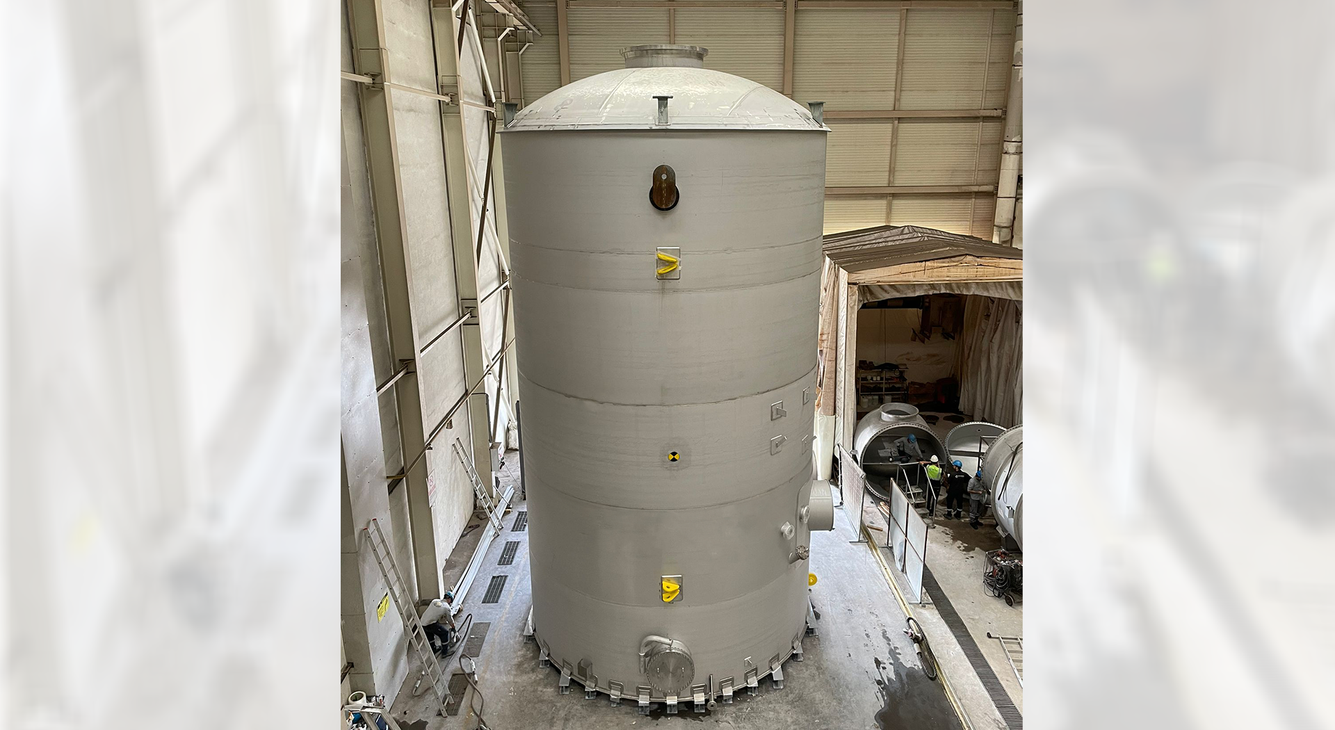 Ayrıca gerekirse kauçuk kaplama, iç boya/kaplama, iç aksamlar, merdiven ve platformların tedarik ve montajını da sağlamaktayız. Ayrıca paslanmaz çelik proses ekipmanlarının asit pasivasyon işlemleri kendi fabrikamızda gerçekleştirilmektedir.